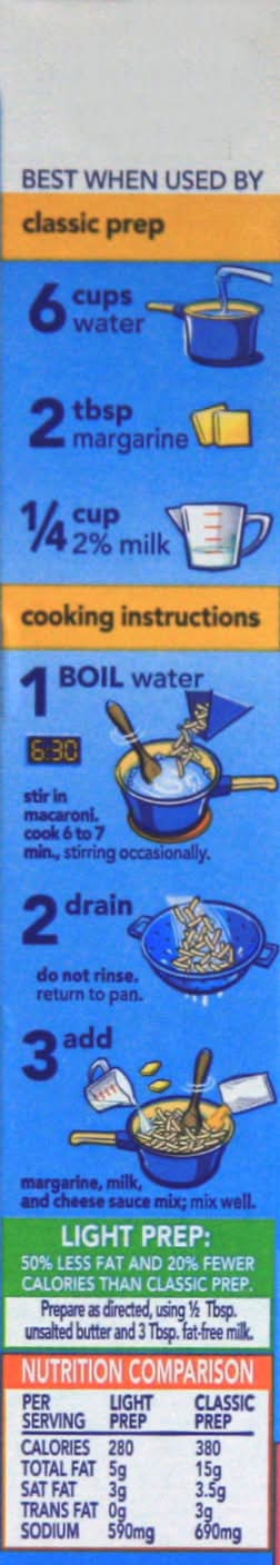 Enriched Cauliflower Pasta Product (Enriched Wheat Flour [Wheat Flour, Durum Wheat Flour, Niacin, Ferrous Sulfate (Iron), Thiamin Mononitrate (Vitamin B1), Riboflavin (Vitamin B2), Folic Acid], Dried Cauliflower); Cheese Sauce Mix (Whey, Milk, Salt, Skim Milk, Milkfat, Milk Protein Concentrate, Modified Food Starch, Contains Less than 2% of Sodium Tripolyphosphate, Buttermilk Solids, Sodium Phosphate, Citric Acid, Cellulose Gel, Cellulose Gum, Lactic Acid, Cheese Culture, Calcium Phosphate, Yellow 5, Yellow 6, Enzymes) Contains: Milk, Wheat