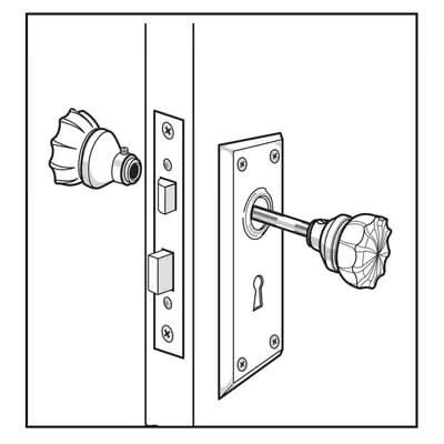 The Defiant 2 in. Victorian Glass Knob Mortise Lock Set is constructed from steel and comes finished in aged bronze. It is designed for left-handed or right-handed installation. The lock bolt is key-activated from either side.