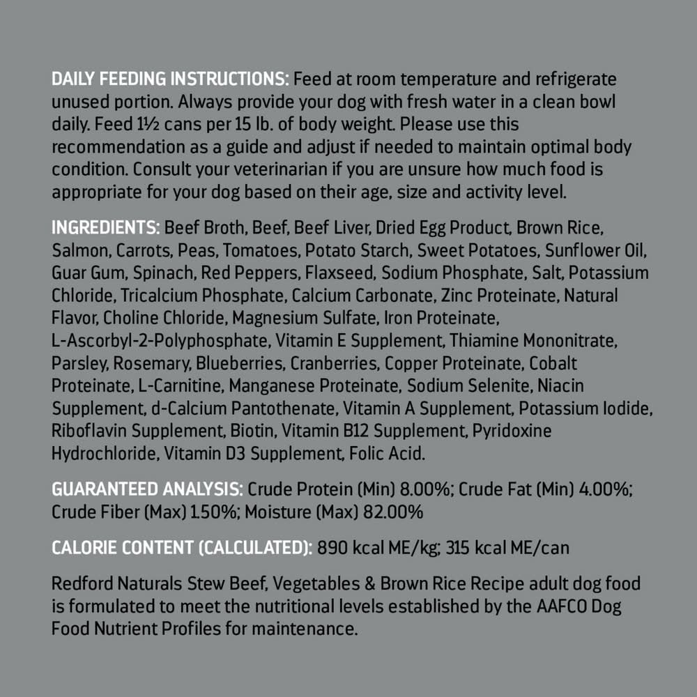 Redford Naturals Stew Adult Wet Dog Food, Beef Vegetables & Brown Rice (12.5 oz)