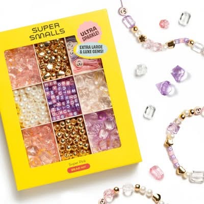 Ready to add some sparkle to your day? The Super Smalls Super Pink Jewelry Kit is here to help you shine! Packed with vibrant pink and purple beads, playful alphabet beads, and glittering gold and pearl accents, this kit is perfect for creating your very own custom jewelry and accessories. With stretchy string that makes designing a breeze, you can craft necklaces and bracelets that are as unique as you are. Whether you’re spelling out your name or creating a one-of-a-kind design, the Super Smalls kit brings endless fun and creativity to your jewelry-making adventures. Color: Pink