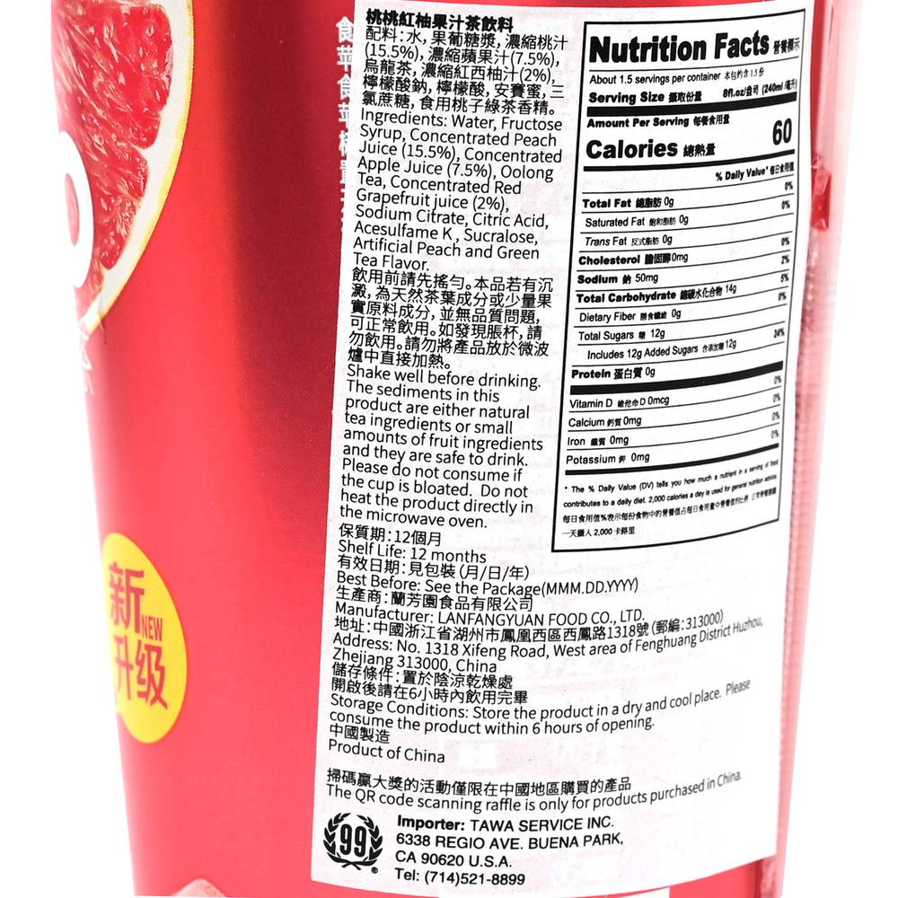 Senpure Meco Peach Grapefruit Fruit Tea (13.5 oz)