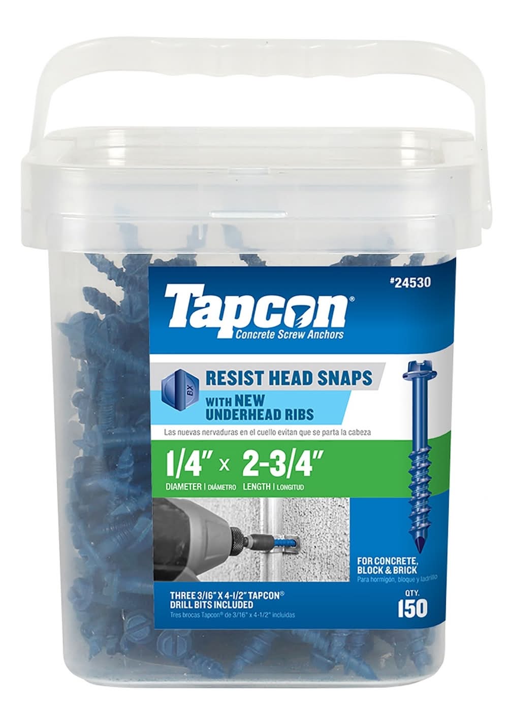 Your Tapcon 1/4 X 2-3/4'' Hex Washer Head, Steel Concrete Anchors delivery options may vary depending on where you are in a city. Enter your address to browse Tapcon 1/4 X 2-3/4'' Hex Washer Head, Steel Concrete Anchors delivery options near you.