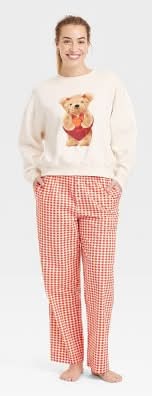 Keep your laid-back look fun and comfortable with this Women's Teddy Bear Heart Graphic Sweatshirt - Off-White. Fashioned in a regular fit, this long-sleeve sweatshirt features a classic crewneck and a pullover style for easy wear. The soft fleece material offers cozy comfort, while the ribbed hem and cuffs provide a snug fit. Slip on this sweatshirt with your favorite pair of jeans for a perfectly relaxed look.