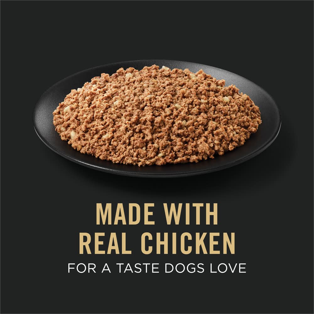 Developed to suit the nutritional needs of your highly active dog, real, high-quality chicken is the first ingredient. Each serving of this high protein dog food is 100 percent complete and balanced for canine athlete and features 23 essential vitamins and nutrients to support his game and no artificial colors or preservatives. Plus, this canned dog food has moisture to support healthy hydration to help your dog achieve his full athletic potential. Rich in antioxidants, this real meat dog food also helps support a healthy immune system.