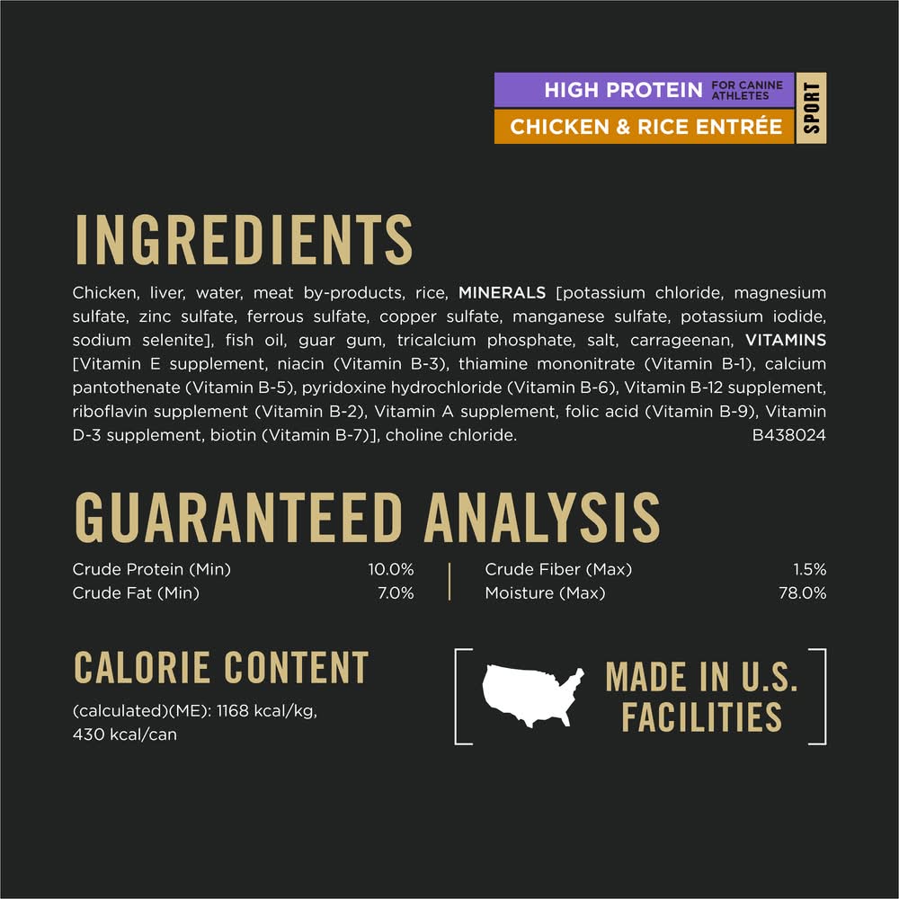Purina Pro Plan Sport High Protein Chicken and Rice Entree Wet Dog Food, Adult (12 x 13 oz)