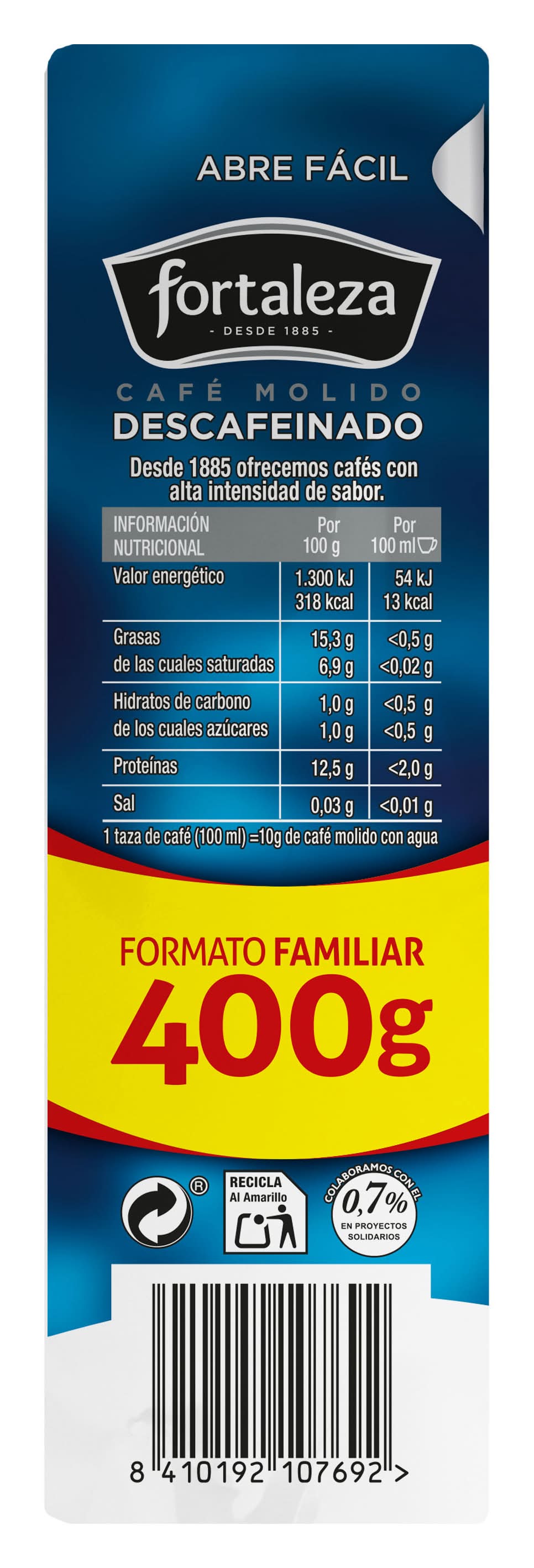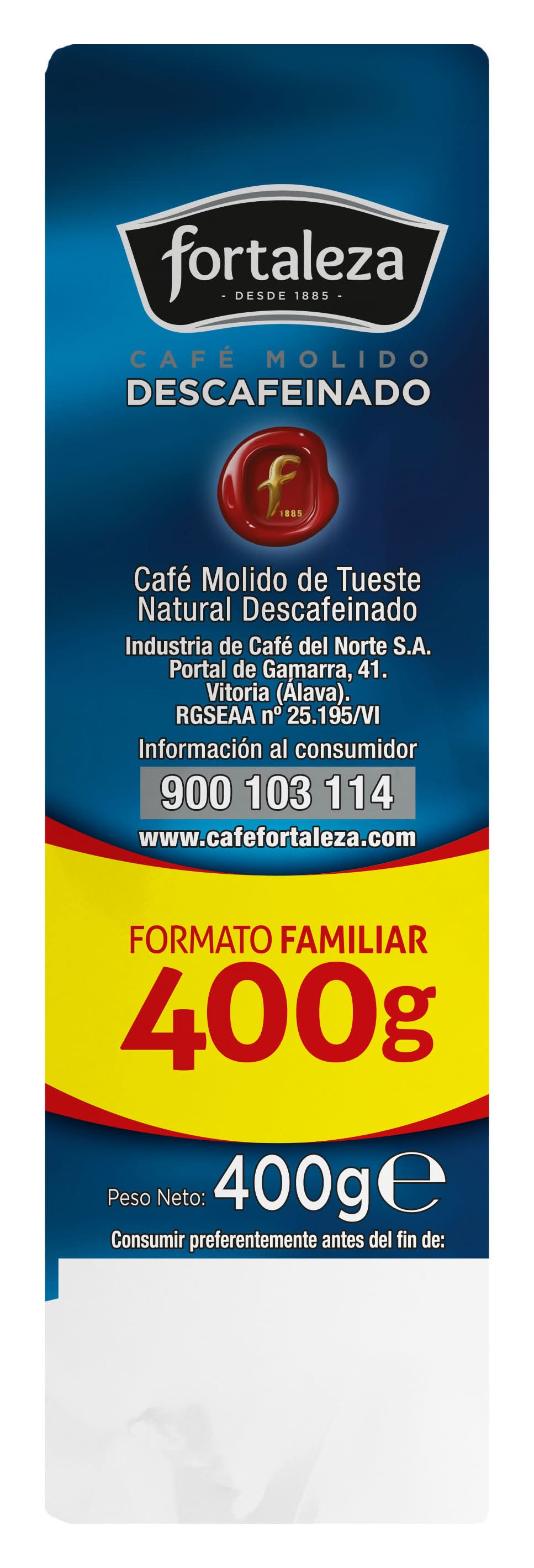 Café molido de tueste natural descafeinado intensidad 6 · Fortaleza (400 g)