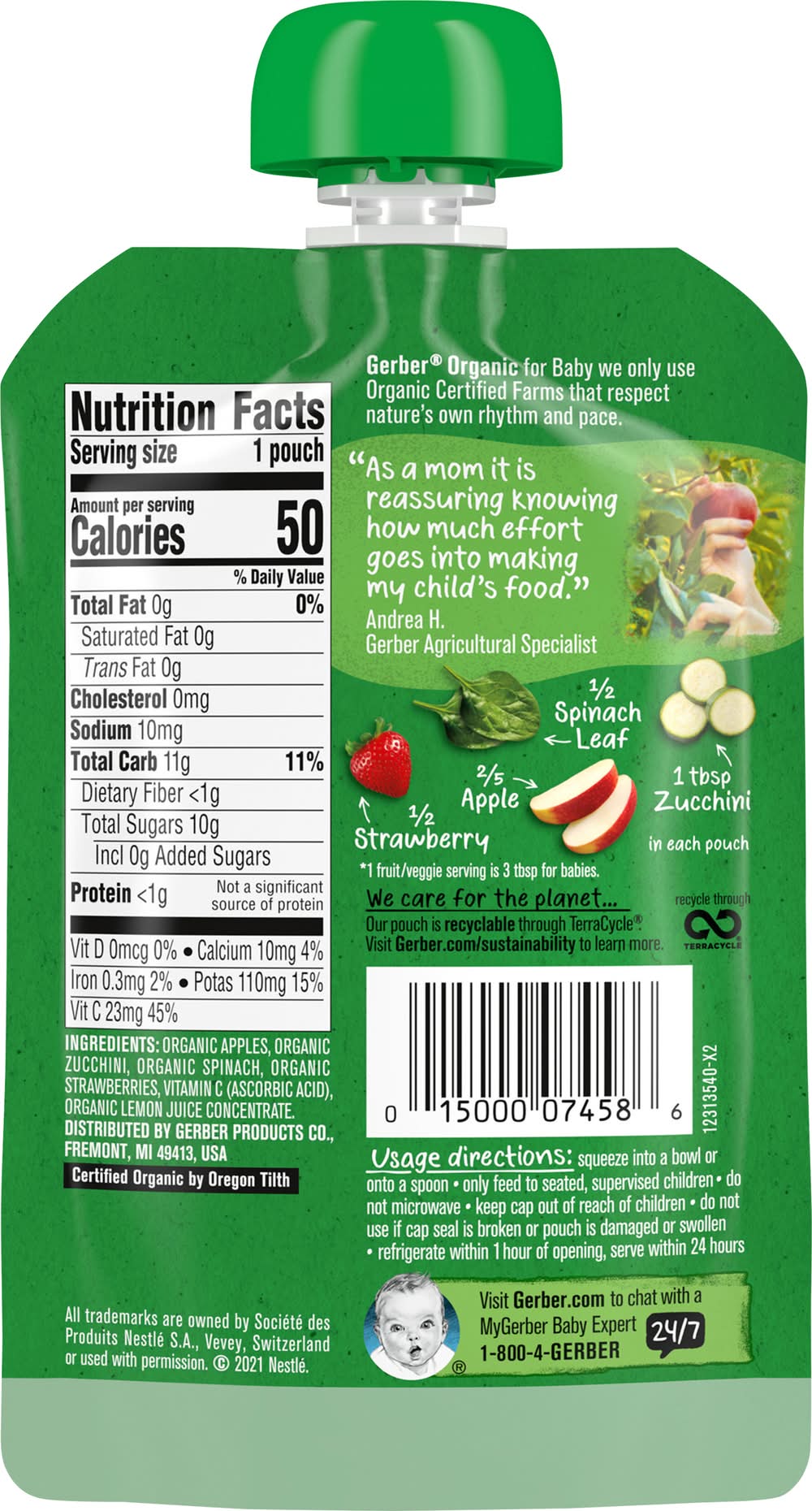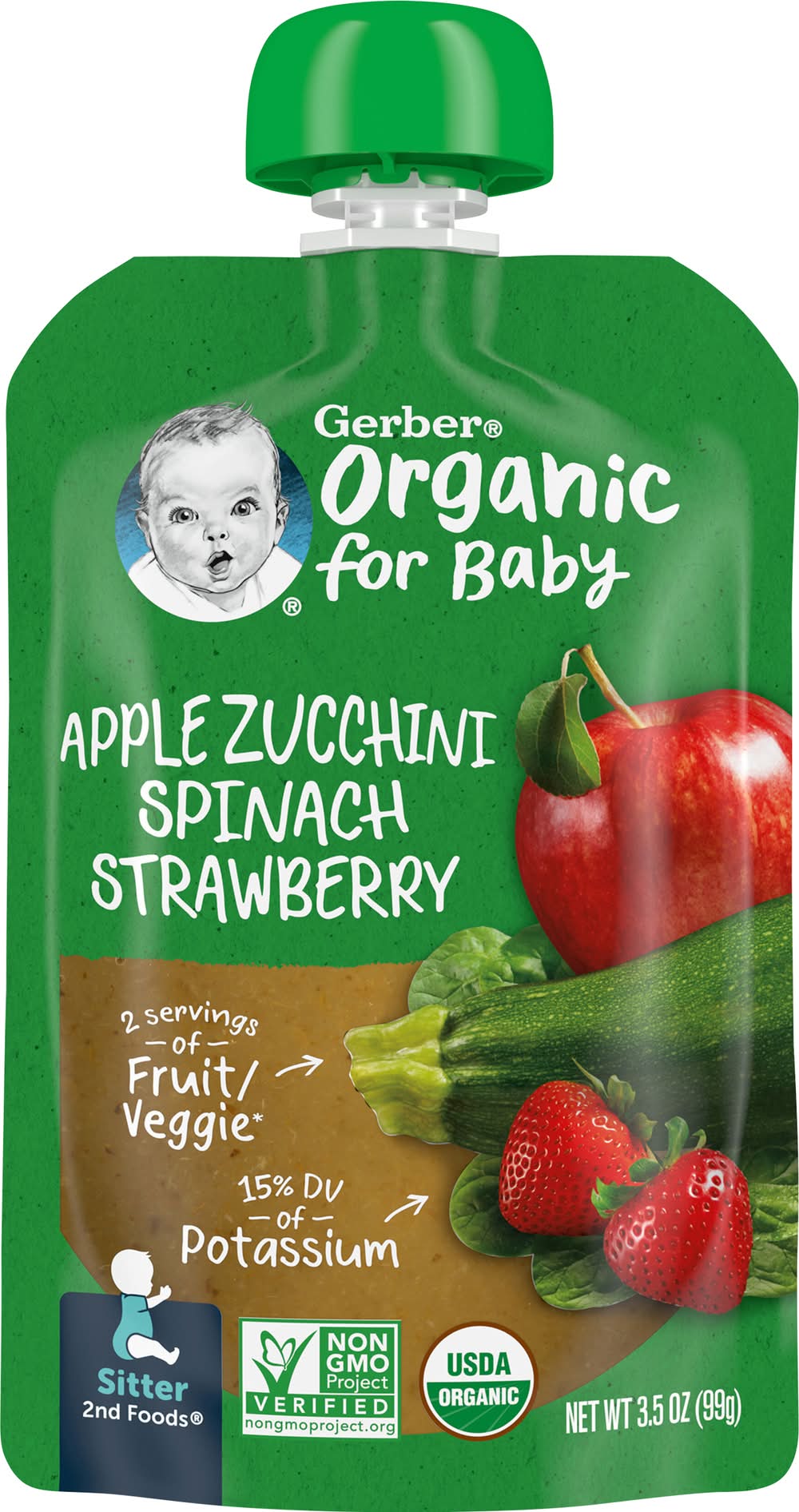 Gerber Organic Sitter 2nd Apple Zucchini Spinach Strawberry Puree Food For Baby (3.5 oz)