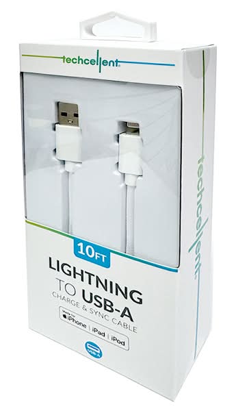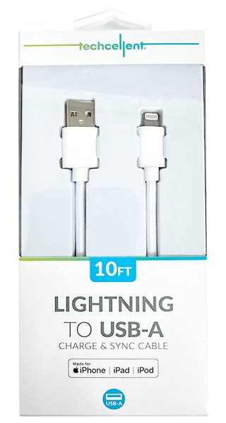 Techcellent Lightning To Usb-A Charge & Sync Braided Cable, 10 Ft, White