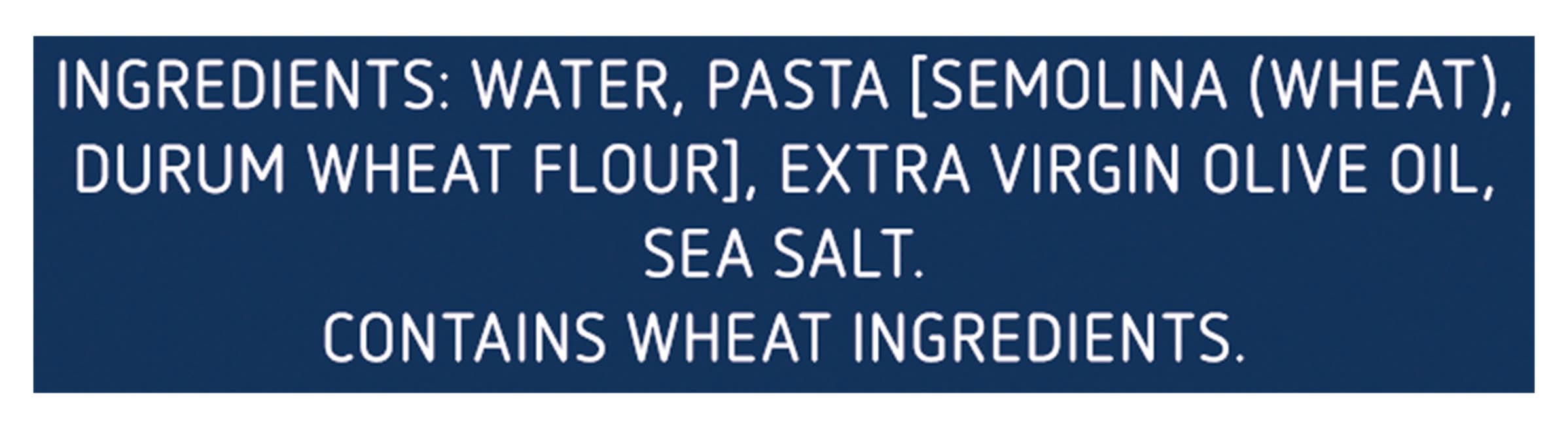 Ingredients: Water, Pasta [Semolina (Wheat), Durum Wheat Flour], Extra Virgin Olive Oil, Sea Salt Contains: Wheat