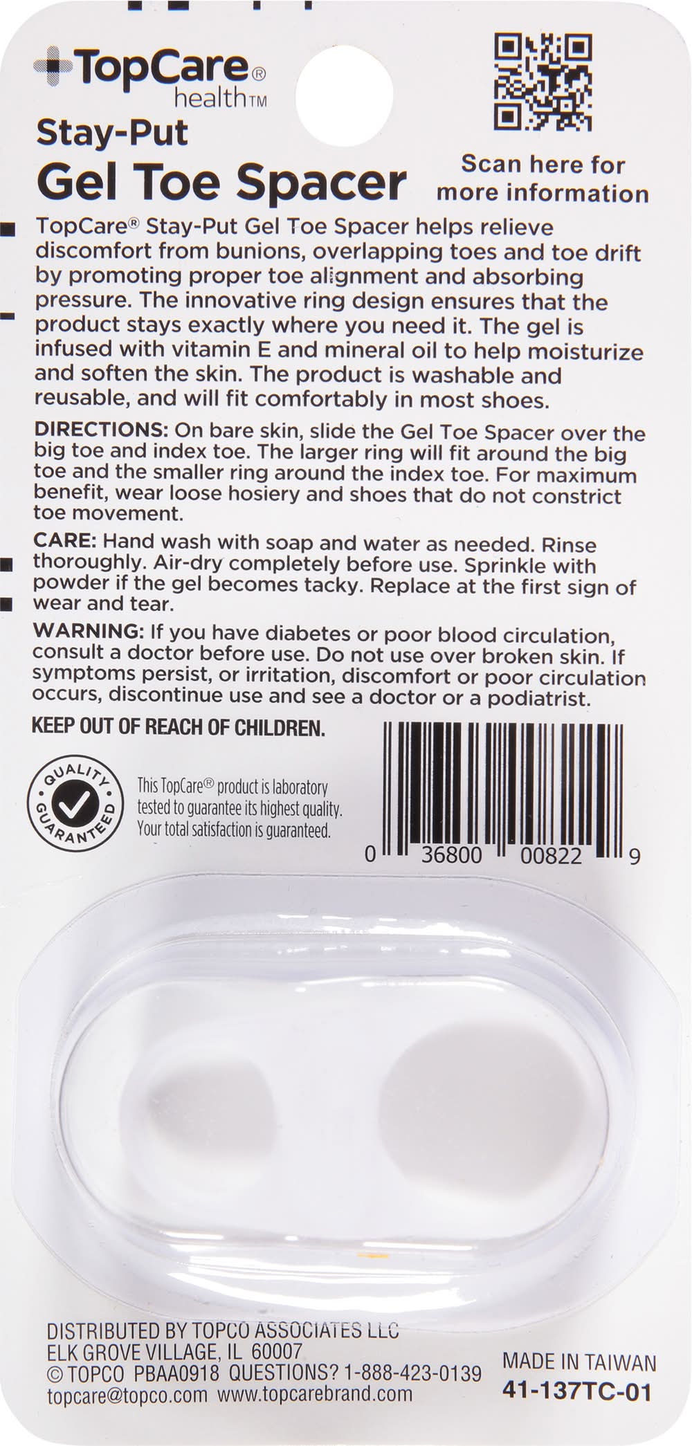 Your TopCare Toe Spacer Gel delivery options may vary depending on where you are in a city. Enter your address to browse TopCare Toe Spacer Gel delivery options near you.