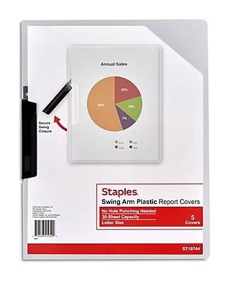Staples Swing Lock Report Covers, 8.5" X 11", Clear-Smoke (5 ct)