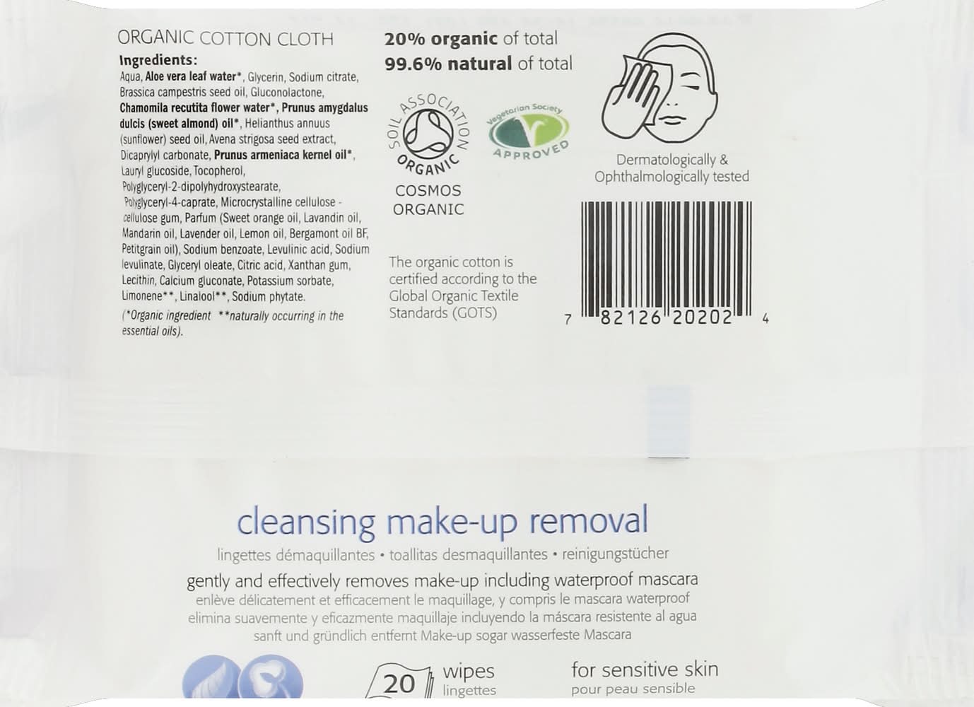 Natracare Make-Up Removal Towelettes For Sensitive Skin (4.3 oz, 20 ct)