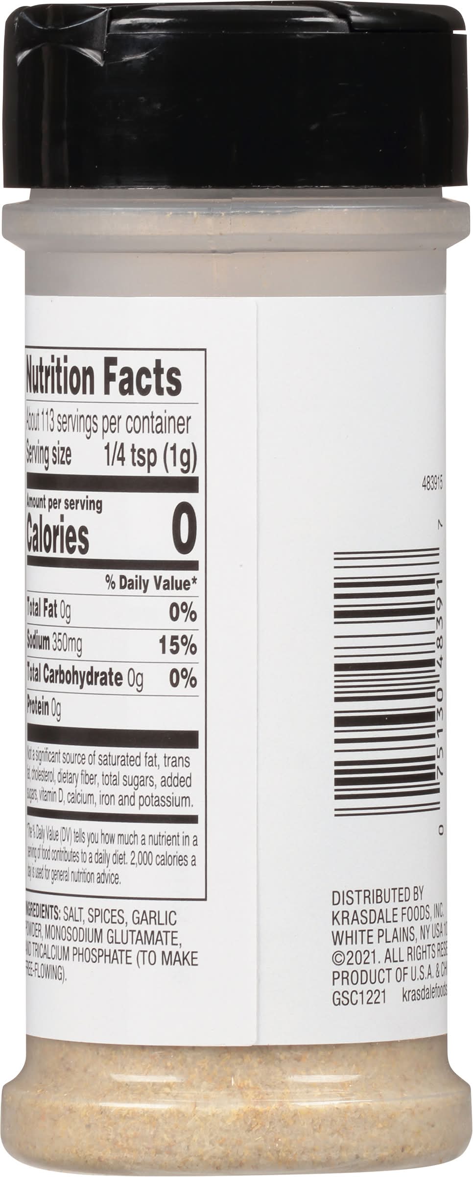 Salt, Spices, Garlic Powder, Monosodium Glutamate, and Tricalcium Phosphate (to Make Free-Flowing)