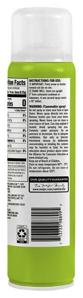 For easy nonstick cooking, look no further than Meijer Canola Cooking Spray. Made with canola oil for fat free cooking, and made without any artificial flavors, colors or preservatives, it's a great way to minimize cleanup for your favorite stovetop and oven dishes! Packaging: Reusable
