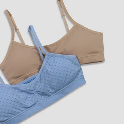 Get double the comfort and support with this Girls’ Seamless 2 Pack. Available in a blue, delicate dot print and a basic nude, these bras feature removable padding for modesty and shaping to provide a neat, sleek look without any bumps or creases. Their soft and seamless material provides complete comfort for all-day wear, and adjustable straps allow for a custom fit.