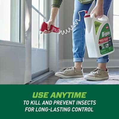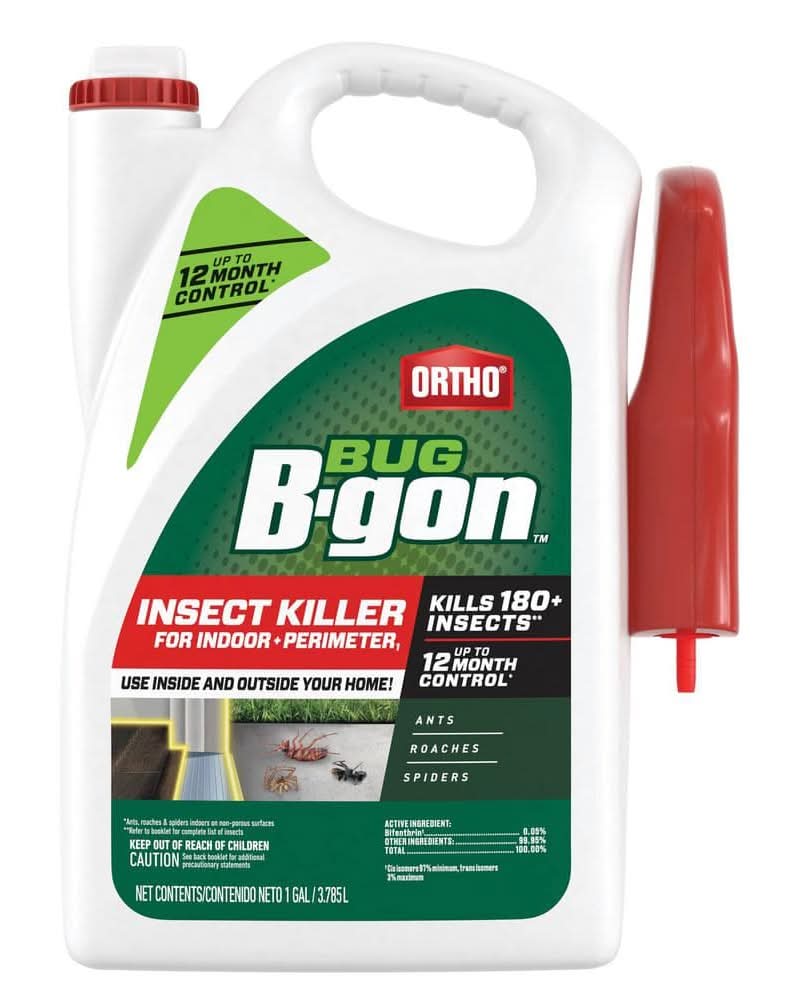 Kill and prevent pesky insects inside and outside your home with Ortho Bug B-gon Insect Killer for Indoor + Perimeter1. This ready-to-use, easy-to-apply formula kills more than 180 listed insects by contact, including ants, cockroaches, spiders, fleas, ticks, scorpions, beetles, earwigs, silverfish, centipedes, and millipedes. In addition, this pest control product prevents ants, roaches and spiders indoors on non-porous surfaces for up to 12 months. The formula dries in minutes, allowing people and pets quick re-entry once sprays have dried. You can apply with confidence indoors in kitchens, bathrooms, doors, windows and basements or outdoors. Use anytime as a preventative treatment or after you see evidence of insect activity inside or outside the home. The trigger sprayer allows you to accurately target insects you want to kill. Simply connect the sprayer to the bottle, turn the nozzle to your desired spray pattern and begin spraying for long-lasting control. People and pets may enter the treated area after spray has dried. Trust Ortho to keep bugs out of your home.