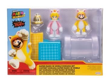 Nintendo launched its first console, the Nintendo Entertainment System, in North America in 1985 and with it, introduced the popular Super Mario Bros. franchise. Mario has since gone on to star in many gaming adventures, becoming the pop-culture icon he is today. Along with his friends Luigi, Peach, Yoshi, and Toad, this classic video game hero has an enduring appeal for fans of all ages! The Super Mario 3D World Diorama Set lets you recreate the purrfect scenes from the video games. You can send Cat Mario through the clear tube or have Cat Peach scale on the block platforms. Both Cat Mario and Cat Peach have 6 points of articulation. This diorama set also includes a Super Bell. Add this set to your Super Mario collection today!