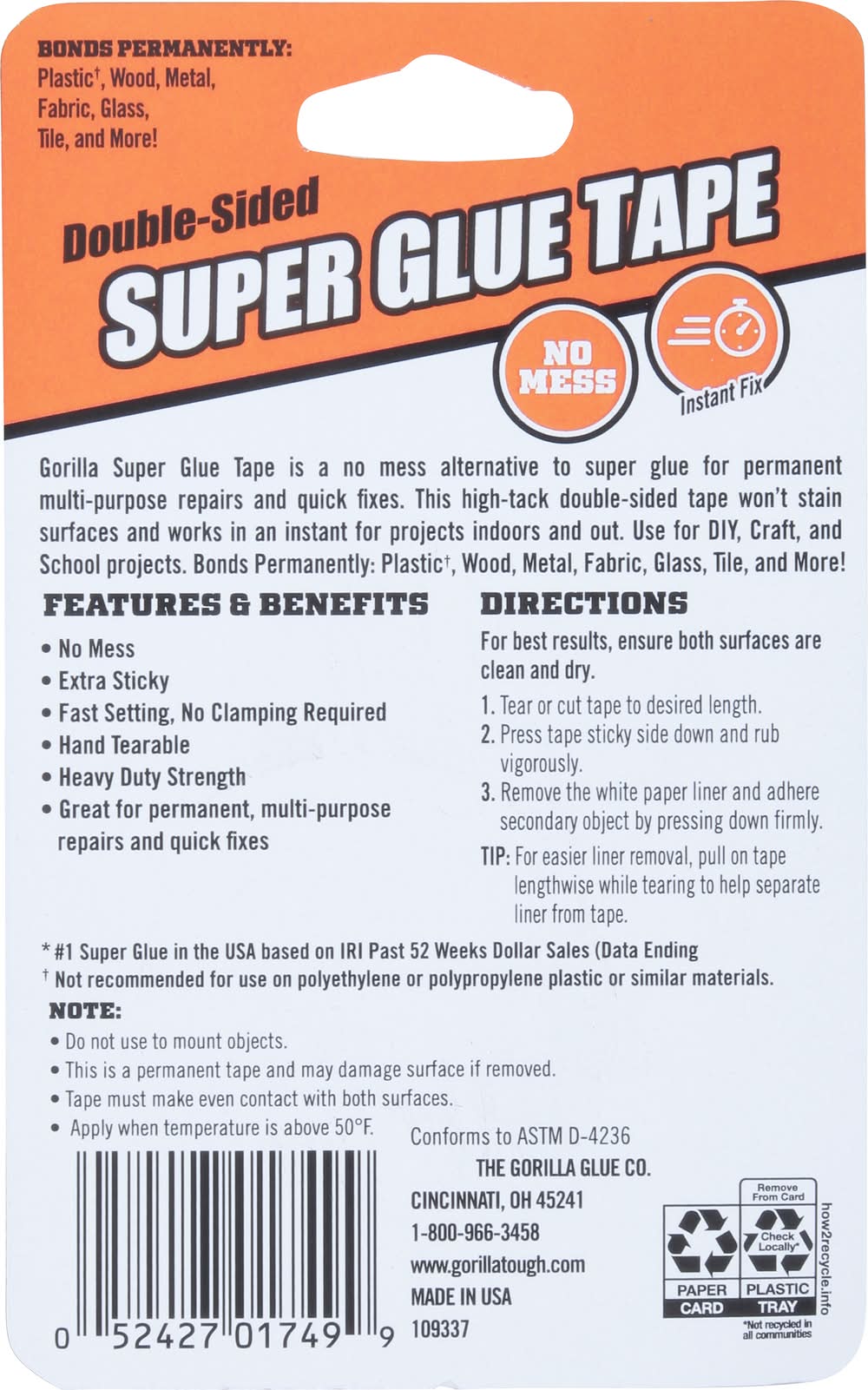 Your Gorilla Super Glue Tape delivery options may vary depending on where you are in a city. Enter your address to browse Gorilla Super Glue Tape delivery options near you.