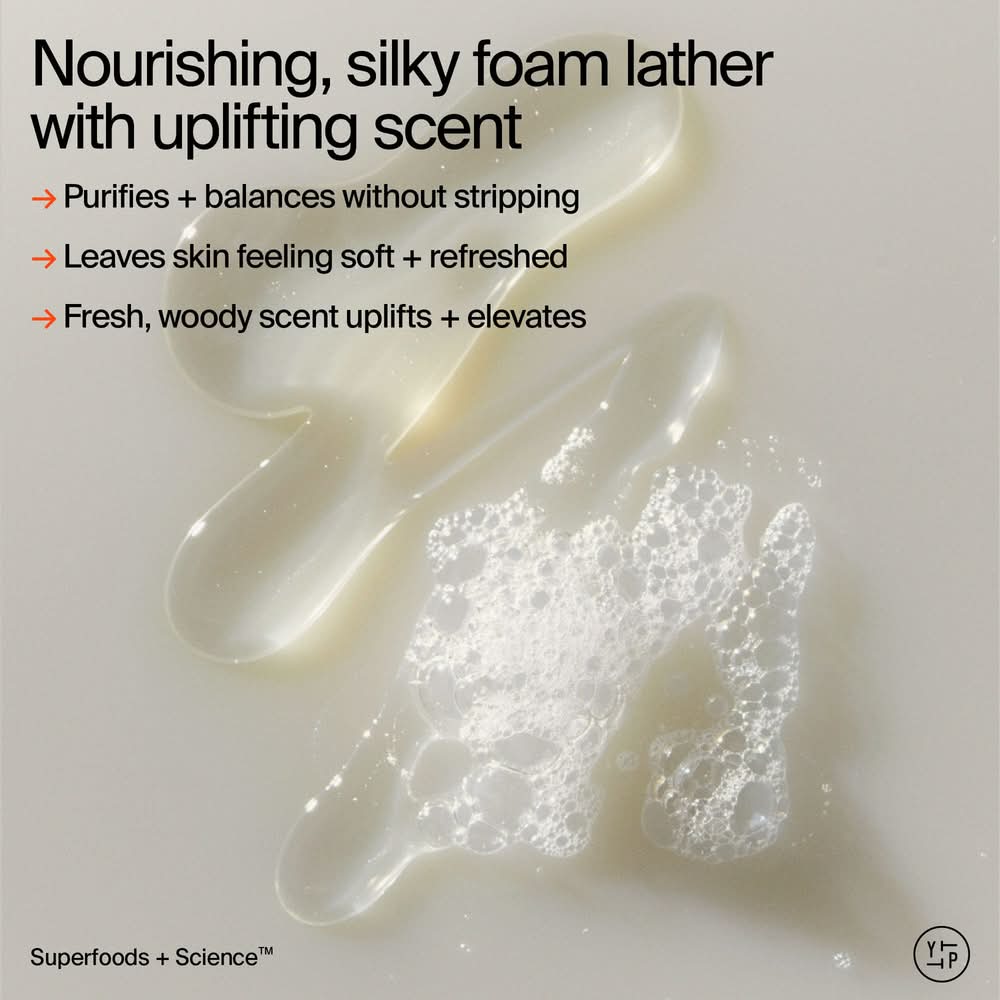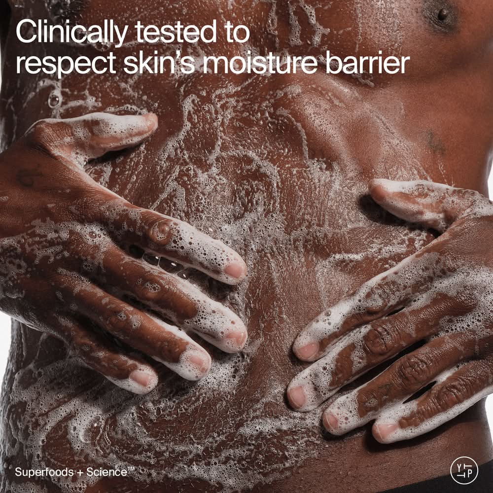 What it is: A nourishing body wash, formulated with niacinamide and antioxidants, that purifies and visibly balances without a stripping effect, leaving skin soft, smooth, and hydrated. Fragrance Family: Earthy & Woody Scent Type: Earthy Greens & Herbs Key Notes: Fresh Greens, Black Pepper, Cedarwood Fragrance Description: This aromatic blend uplifts one’s senses and self. Highlighted Ingredients: - Niacinamide: Boosts hydration, supports barrier strength, and visibly evens skin tone. - Kale and Green Tea Extracts: Are antioxidant-rich powerhouses that prevent visible signs of aging and leave skin glowing. - Plant-Based, Gentle Amino and Fatty Acid Surfactants: Gently cleanse away buildup with a fresh, rich lather. What Else You Need to Know: This luxurious foaming gel visibly purifies and balances the skin while maintaining its moisture barrier and delivering nourishing vitamins and antioxidants. The signature scent, Elevated Self, uplifts the mind and body with notes of fresh greens, cedarwood, and black pepper. Clinical Results: In a consumer study with 52 people, using bio-instrumental measurements, results showed: - Skin's moisture-barrier function was maintained After 4 weeks: - 94% agreed skin felt soft and soothed - 92% agreed skin looked smooth and clear Size: 16.4 oz
