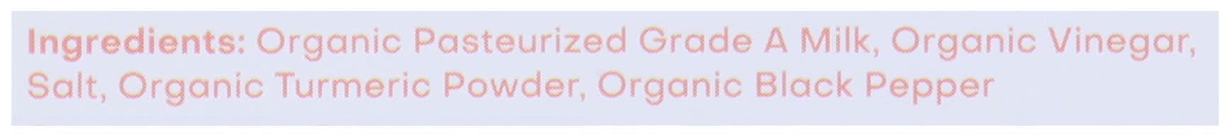 Organic Pasteurized Grade A Milk, Organic Vinegar, Salt, Organic Turmeric Powder, Organic Black Pepper Contains: Milk