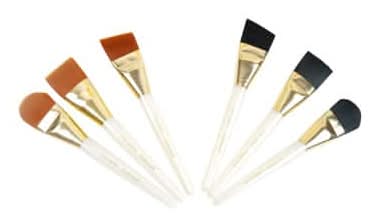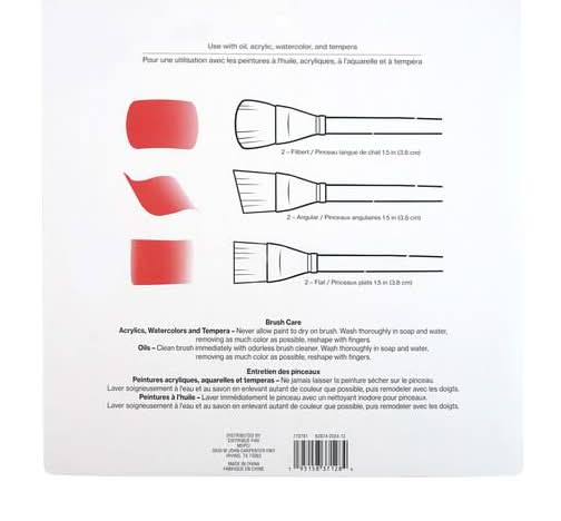 Including three shapes, these brushes can be used with oil, acrylic, tempera and watercolor paints. Whether for art class, painting with friends or turning an upcycled piece of furniture into a work of art, this set will make a fantastic addition to your arts and crafts tool collection. Includes assorted brush shapes. Black and brown synthetic bristles. Gold colored aluminum ferrules. Long white plastic handles