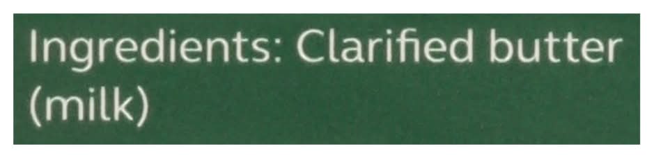 Clarified Butter (Milk) Contains: Milk