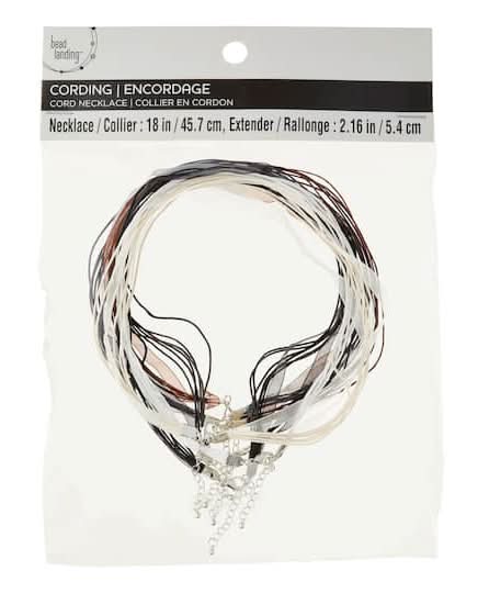 String your favorite pendants, beads and jewelry accents on to these ribbon and cord necklaces to create one-of-a-kind fashion pieces. Featuring sheer ribbon and thin cotton cording, each necklace comes pre-assembled with a lobster clasp closure and extension chain. Includes • Color: Assorted • Size: 18 In