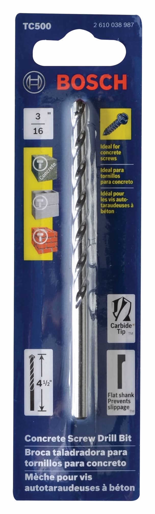 Bosch Flat Shank Hex Masonry Drill Bit, 3/16 In X 4-1/2 In