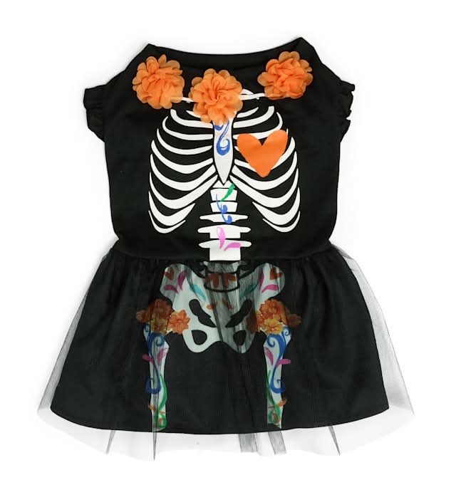 Celebrate Dia de los Muertos in spooky style with this skeleton pet dress, inspired by Dia de los Muertos traditions, from Bootique. Whether you stalk thrilling times at twilight or prefer to creep from the comfort of your home, Bootique has everything you need for a spooky season that's so fun, it's scary.