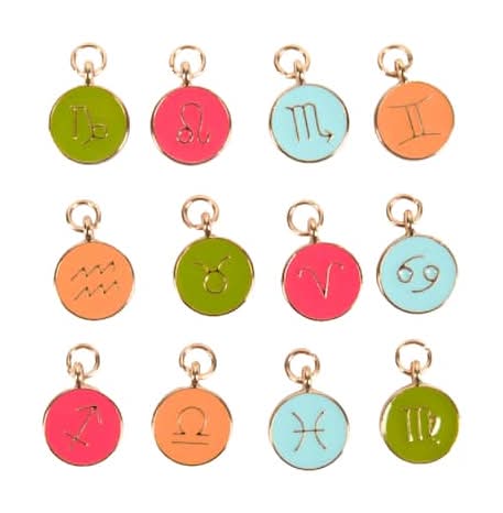 Buy the Zodiac Enamel Charm Set by Bead Landing at Michaels. Create a personalized necklace or bracelet with these zodiac enamel charms from Bead Landing. For a quick outfit embellishment just slide a charm onto a simple chain or ribbon and style as desired. Includes assorted zodiac constellation designs . 11mm x 14mm x 2mm . 12 charms . Attached jump ring . Zinc alloy and enamel