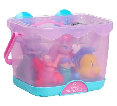 Make a big splash in the tub, at the pool, or the beach with the Disney Caddy. Stylized Disney Ariel, Flounder, Sebastian, Eric, and Ursula figures are sure to fill bath time with waves of imaginative play and good, clean fun. These 2- to 5-inch figures are easy for toddler’s little hands to grasp. Stow them inside their caddy, which not only drains water through the bottom, but can also be mounted in the tub with attached suction cups. Kids will love inventing stories for these iconic pals – both in and out of the water. Their sealed design prevents moisture from seeping inside, keeping figures mold- and mildew-free. For more bath time fun, add other Disney Bath Caddies featuring characters from the stories of Disney’s Mickey Mouse and Friends, Winnie the Pooh, Moana, Disney and Pixar’s Cars, Toy Story, and Marvel Avengers (each sold separately). These bright, colorful kids’ toys make wonderful gifts for boys and girls ages 3 years and up.