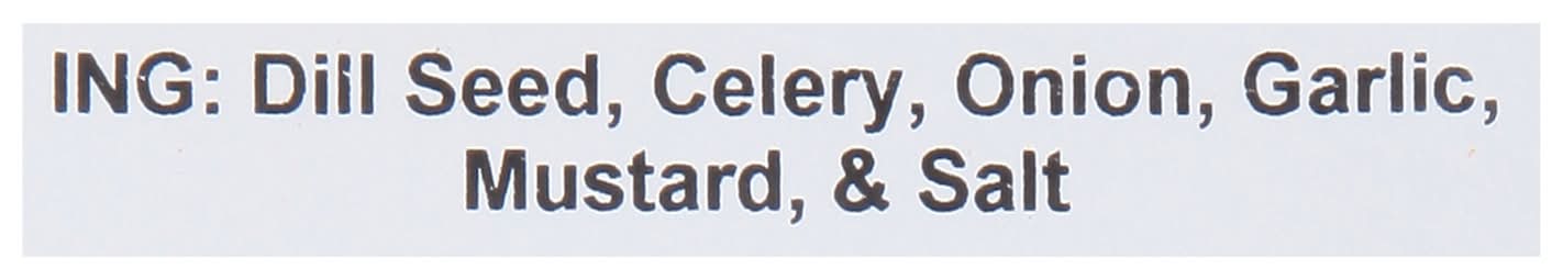 Dill Seed, Celery, Onion, Garlic, Mustard, & Salt Contains: Celery, Mustard
