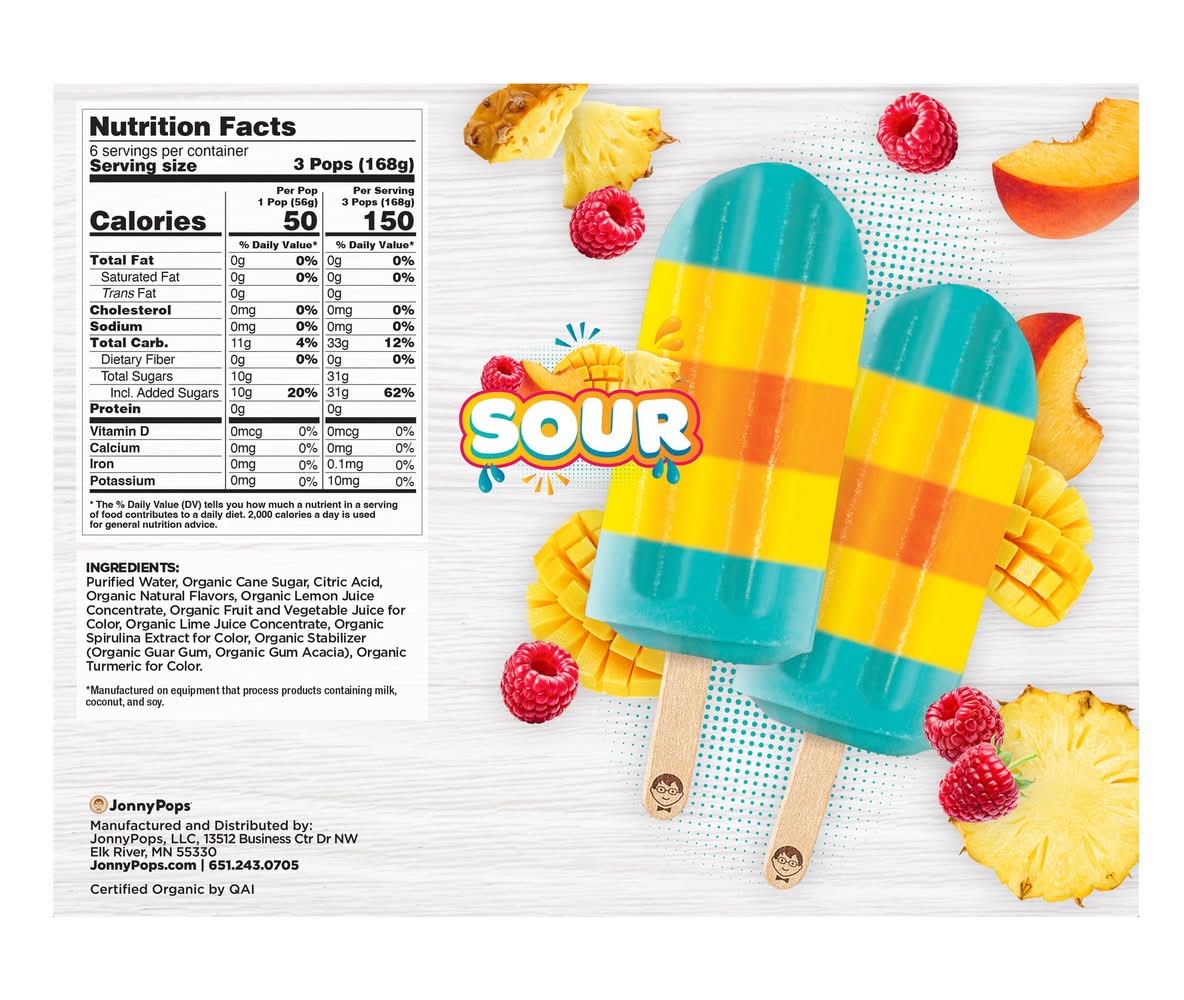 JonnyPops Organic Splash Dairy Free Pops, Assorted (18 x 1.85 fl oz)