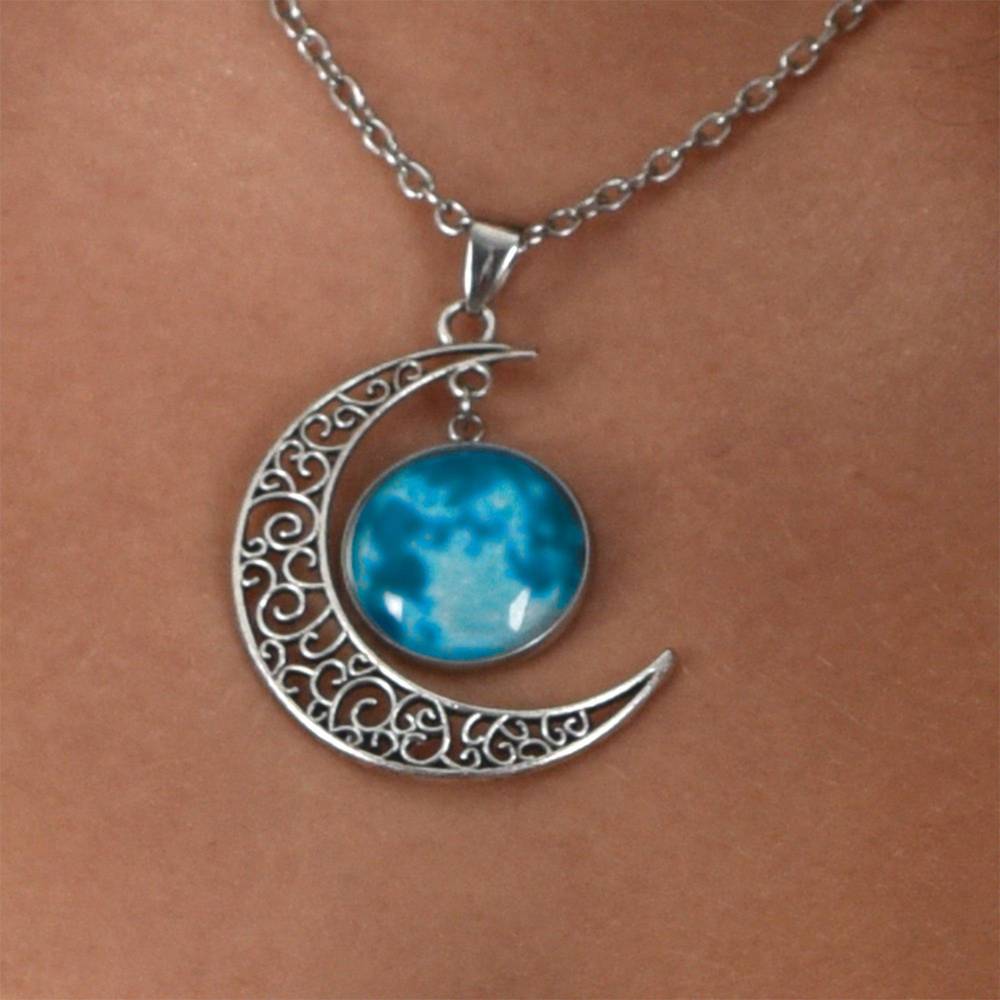 Your witchy vibe is even more enchanting after dark in this accessory. The metal chain has a two-part pendant featuring a blue moon-light jewel and crescent moon accent. And, when exposed to light, the jewel will glow after dark!