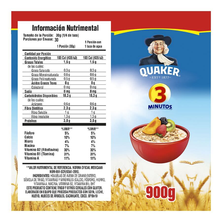 Quaker · 3 Minutos avena y sémola de trigo fortificada (900 g)