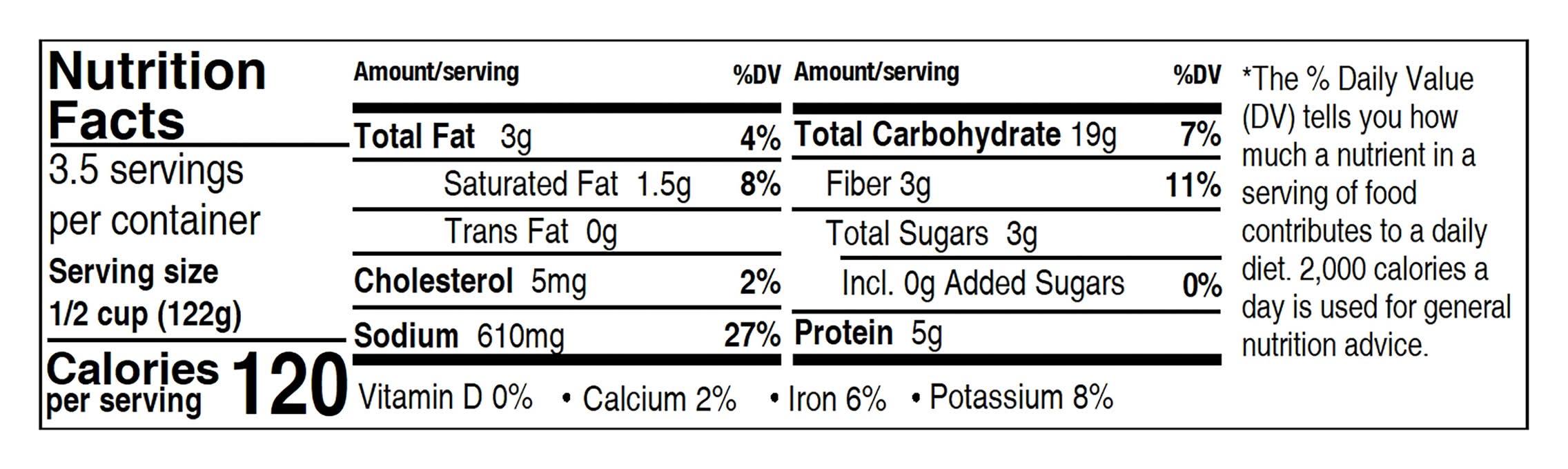 Butter Beans, Water, Shoepeg Corn, Chicken Base (Chicken Meal Including Natural Chicken Juices, Salt, Hydrolyzed Vegetable Protein (Soy, Corn), Sugar, Potato Flour, Natural Flavor, Autolyzed Yeast Extract, Carrot Powder, Turmeric), Contains 2% or Less of: Butter (Pasteurized Cream, Natural Flavorings), Corn Starch, Salt, Spices Contains: Milk, Soybeans, Corn