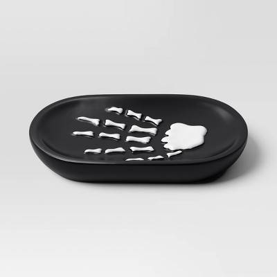 Create a fun Halloween bathroom display with the Halloween Skeleton Bath Tray from Hyde & EEK! Boutique. This black bath tray features a white skeleton hand for a creepy look. Made with resin, it's great to pair with Halloween-themed hand towels and soap pumps for a cohesive look. Hyde & EEK! Boutique: Thrilling delights. Curious oddities.