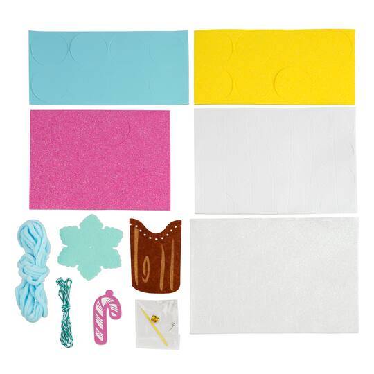 This fun kit comes complete with a mix of foam and felt stickers and shapes, chunky yarn, twine, a bell and a plastic needle to create a tree-shaped calendar with sparkly ornaments for counting down the days 'til Christmas. Christmas tree design.