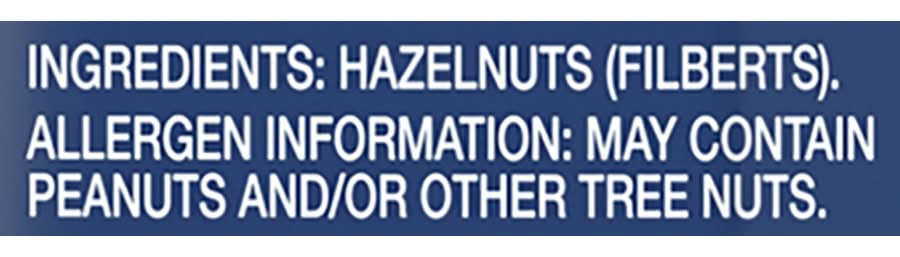 Hazelnuts (Filberts) Contains: Tree Nuts, Peanuts, Tree Nuts