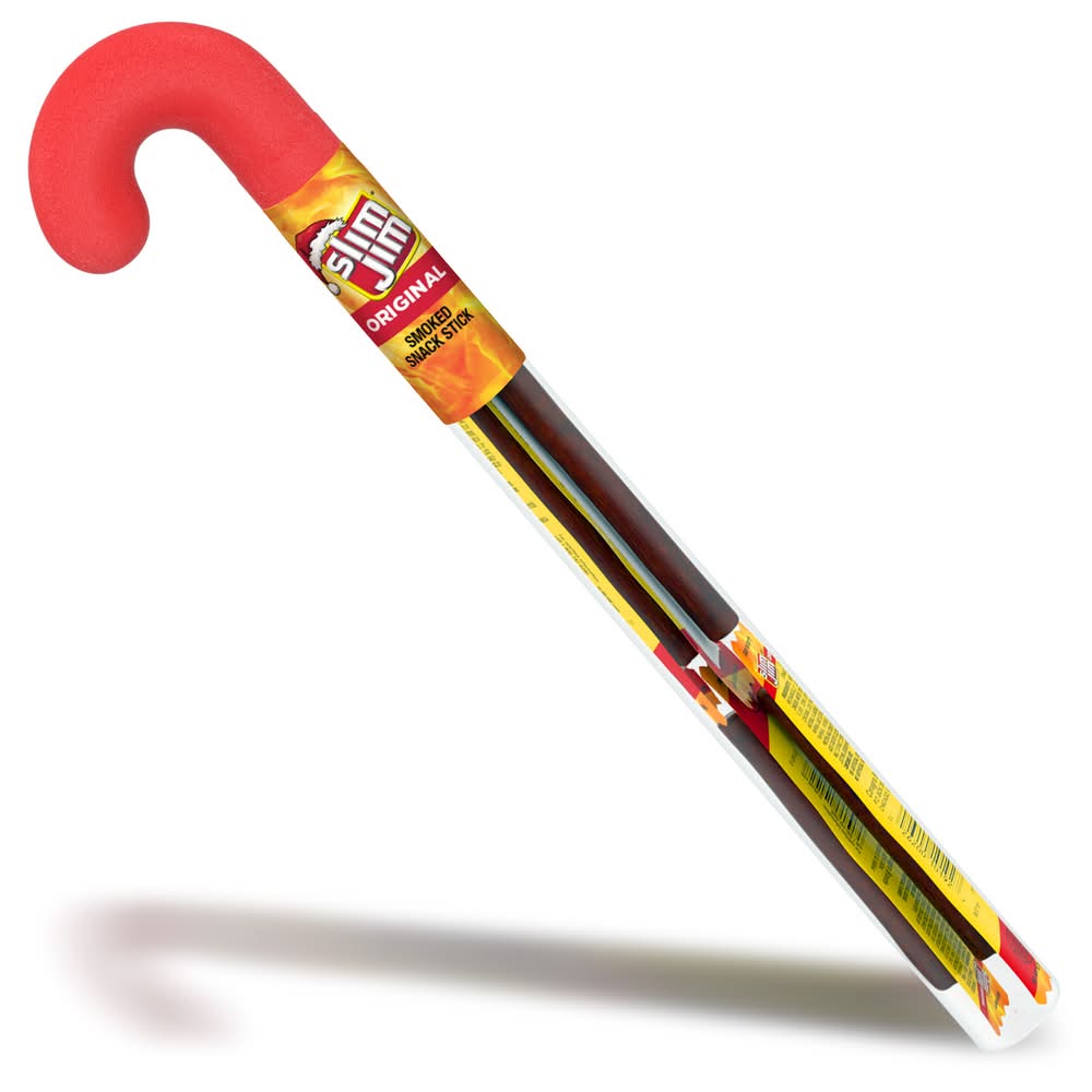 Your Slim Jim Original Flavored Snack Size Meat Sticks in Holiday Cane pack Each delivery options may vary depending on where you are in a city. Enter your address to browse Slim Jim Original Flavored Snack Size Meat Sticks in Holiday Cane pack Each delivery options near you.