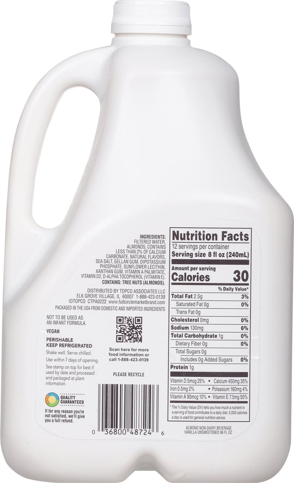 Full Circle Market Unsweetened Almond Milk, Vanilla (96 fl oz)