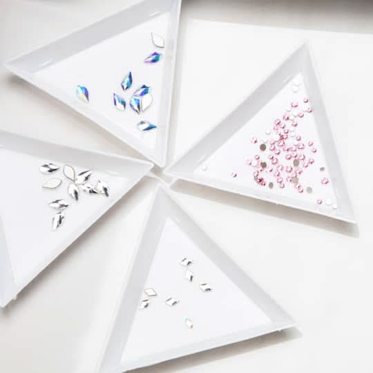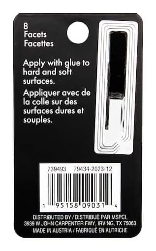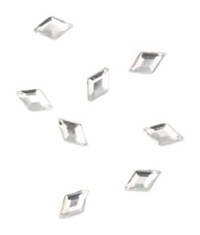Designed with a flat back to be glued onto both hard and soft materials, mix with various shapes, colours and sizes to make stunning accessory and decor pieces. 8 facets on each crystal. Diamond shape. Glass.