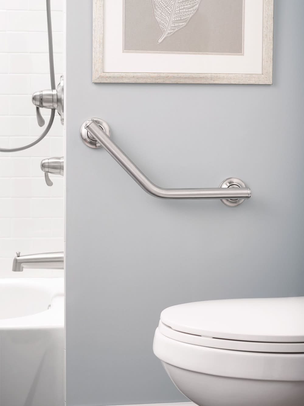 Moen Brushed Nickel Stainless Steel Angled Bathroom Grab Bar, 16 in