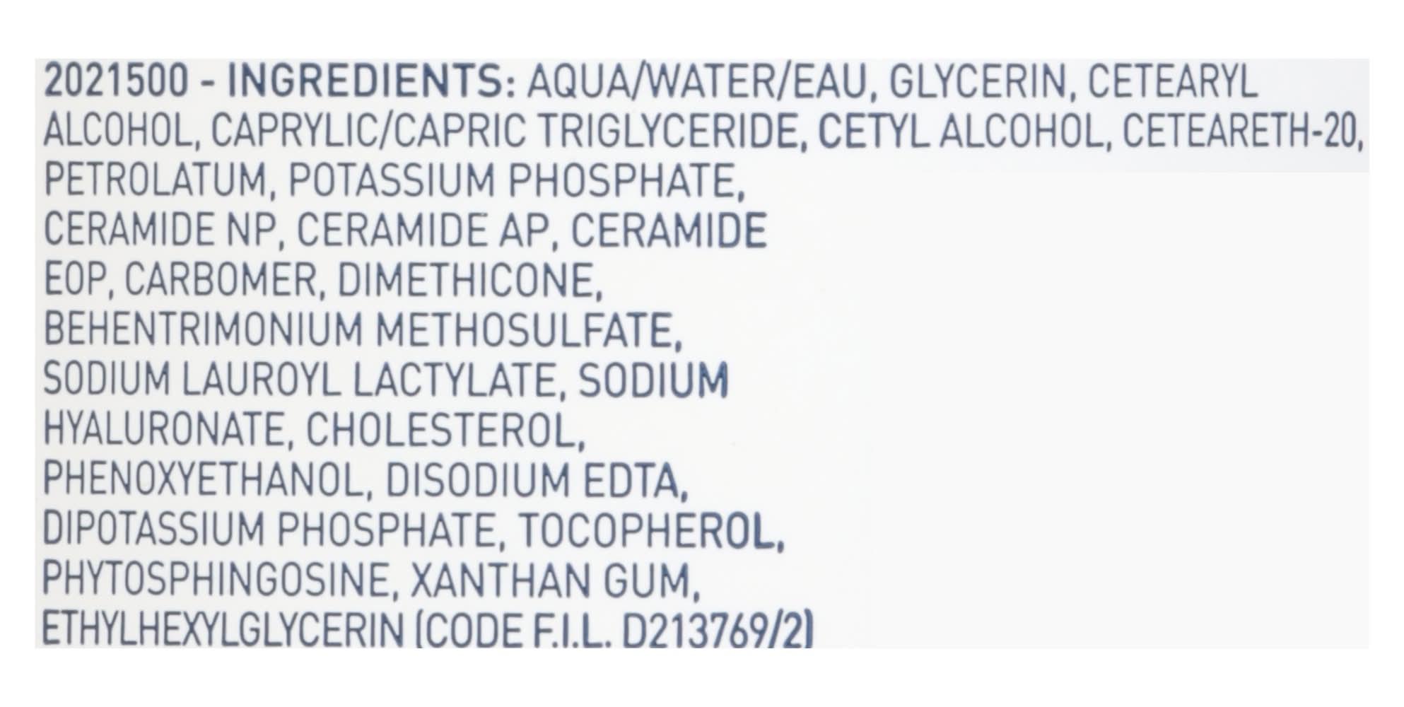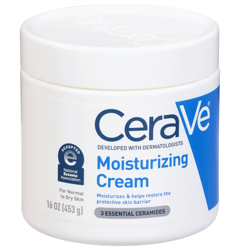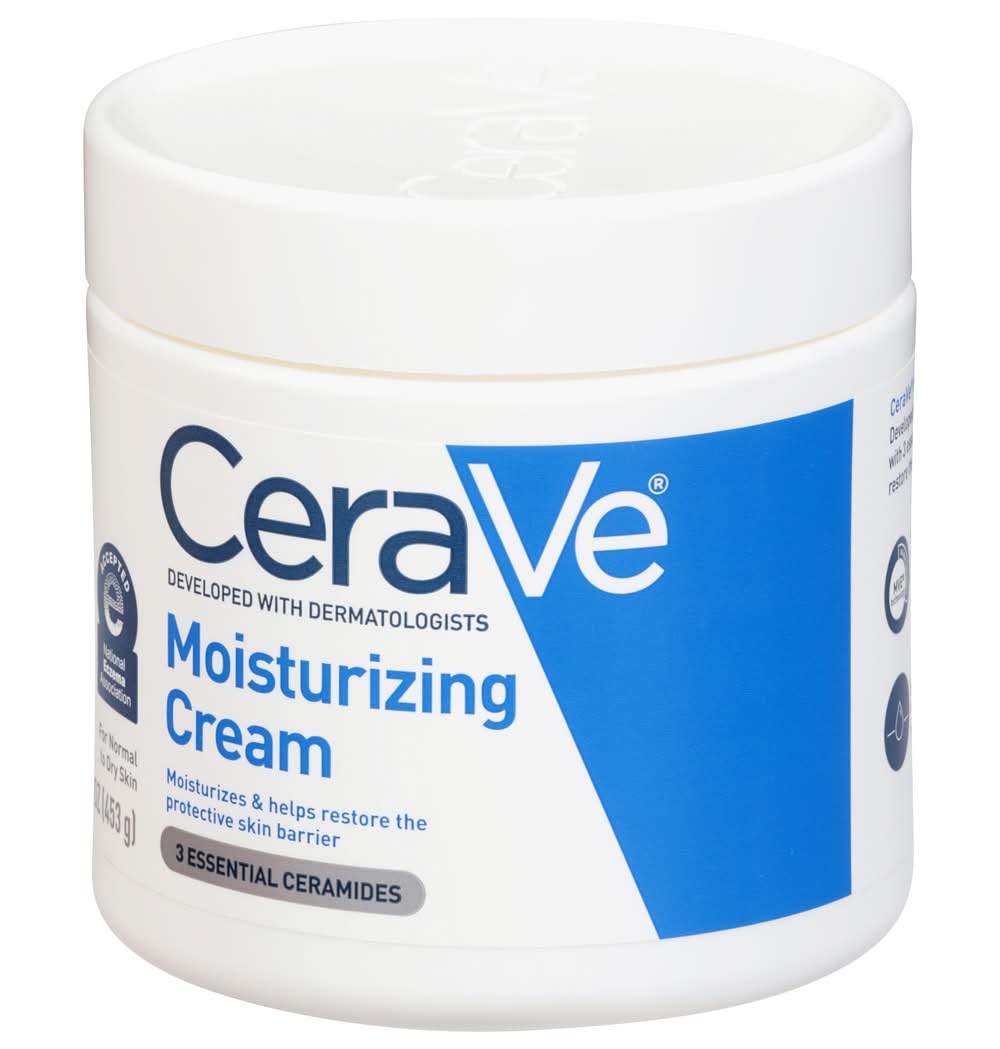 CeraVe Moisturizing Cream is a rich, non-greasy, fast-absorbing moisturizer with three essential ceramides that lock in skin's moisture and help maintain the skin's protective barrier. Suitable for the whole family ages 3 years and older. A compromised skin barrier can lead to skin that looks dry, scaly, rough, or flaky. It might also feel irritated, itchy, or uncomfortable. This is because, when your skin barrier is disrupted, it may be unable to keep essential moisture in (and harmful irritants out). Including a barrier-restoring cream with ingredients like hyaluronic acid and ceramides in your daily skincare routine can help restore the look and feel of smooth, supple, and healthy-looking skin. CeraVe Moisturizing Cream is a rich, non-greasy, fast-absorbing moisturizer for normal to dry skin on the face and body. Formulated with three essential ceramides, it works to lock in skin's moisture and help maintain your skin’s protective barrier. Our moisturizing cream also features hyaluronic acid, petrolatum, and MVE Delivery Technology—which works by continually releasing moisturizing ingredients for long-lasting hydration. Developed with dermatologists, this barrier-restoring cream is gentle on skin, fragrance-free, and accepted by the National Eczema Association. “I recommend CeraVe Moisturizing Cream to my diverse patient population because its gentle, fragrance-free formula helps repair and maintain a healthy skin barrier by replenishing ceramides and locking in hydration.” Dr. Tiffany Clay, Board Certified Dermatologist - Non-comedogenic – Won’t clog pores - Gentle on Skin - NEA Seal of Acceptance – Accepted by the National Eczema Association (NEC) - HSA/FSA Eligible – Eligible for Health Savings Account and Flexible Savings Account Coverage Packaging: Reusable