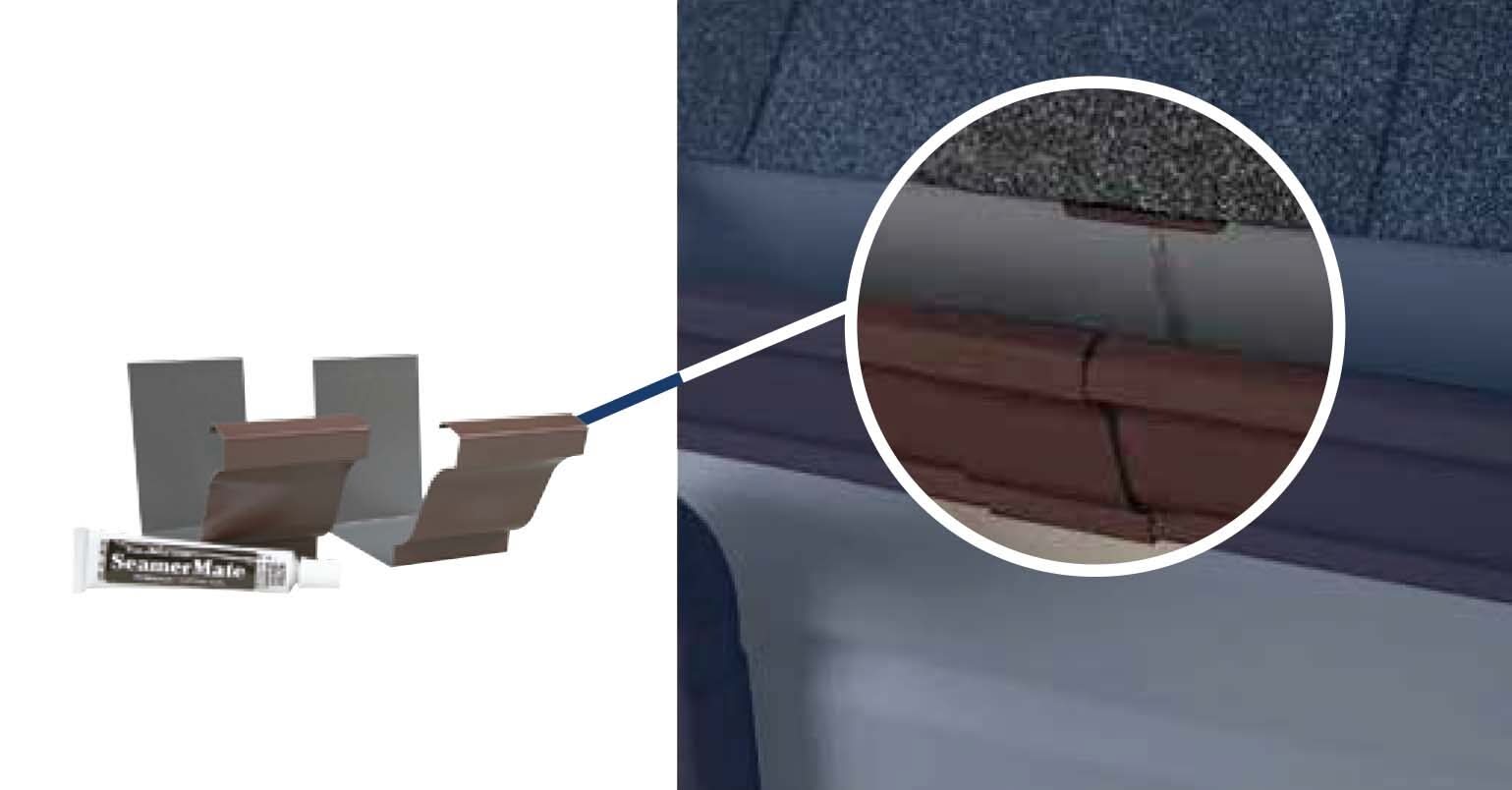 The Amerimax Home Products 5 in. Aluminum Seamers with SeamerMate (2-Pack) feature durable, rust-free aluminum construction and a baked-on brown finish that is able to match the exterior of most homes. This product is used to join 5 in. aluminum gutter sections such as 2 gutters, gutters to miters or gutters to ends with drops. This pack includes 2 seamers and a 1 oz. tube of sealant. Cancer and Reproductive Harm - www.P65Warnings.ca.gov • Color: Brown • Size: 5 in