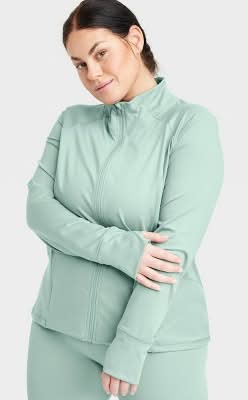 Why we’re ALL IN: This jacket features soft curves that contour to the shape of your body to move with you as you stretch and flow. A full-length zipper offers as much coverage as you like, and it's concealed by a zipper garage for comfortable wear. Thumbholes keep the sleeves in place and keep your hands warm, and the stretchy knit fabric lends a soft, smooth feel for year-round wear. Secure side-entry pockets provide safe storage and maintain a sleek shape when closed. All in Motion: Made for every move, priced for every day.