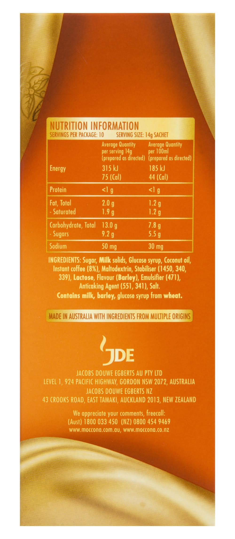 Moccona Cafe Classic Caramel Latte (10 pack)