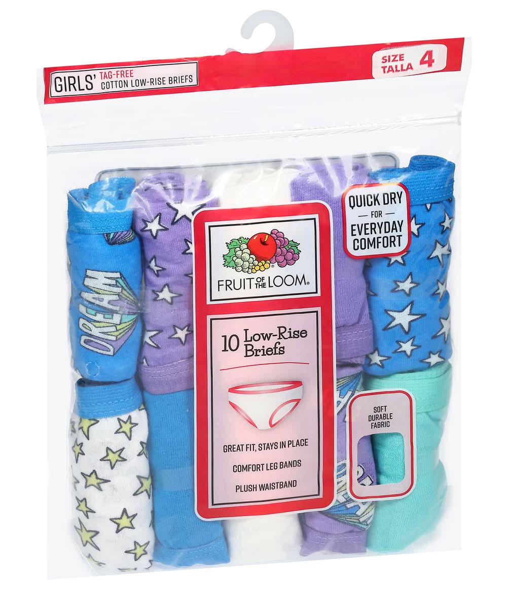 Fruit of the Loom Girl's Cotton Low-Rise Briefs, 4, Assorted (10 ct)
