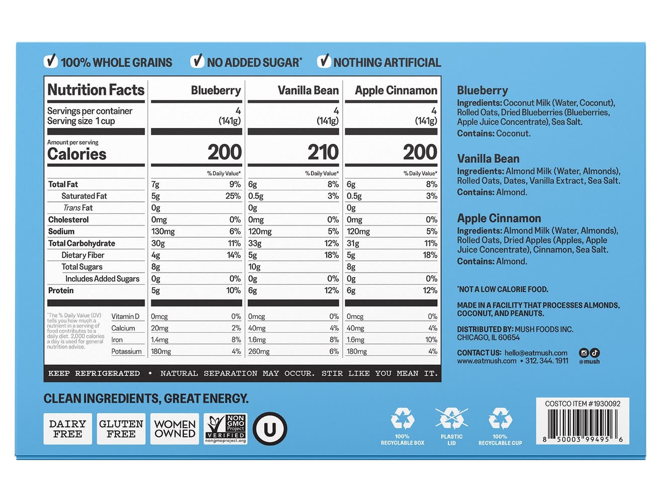 MUSH Overnight Oats Variety pack, Assorted (12 x 5 oz)