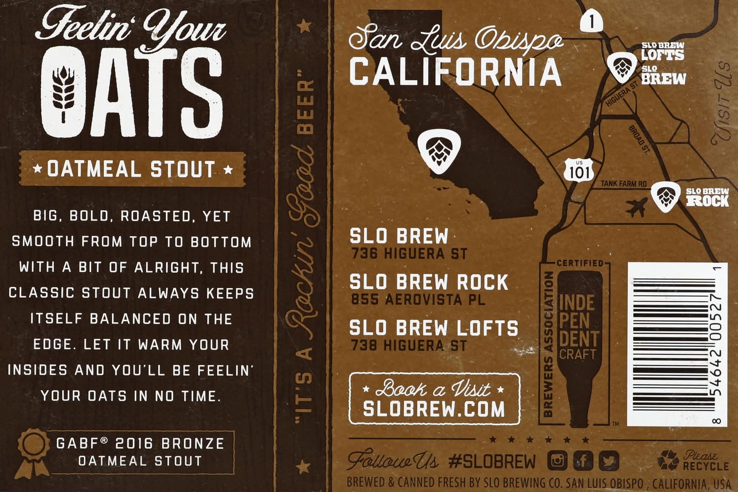 Beer, Oatmeal Stout, Feelin' Your Oats • Alcohol by volume: 5.7% • SLO BREWING,
